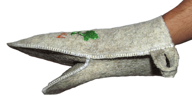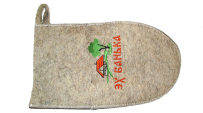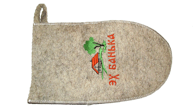 Войлочная банная рукавица с вышивкой. Банная рукавица обеспечивает комфортное пребывание в парной, предотвращает появление мозолей от банного веника и помогает зафиксировать его в руке. Рукавица банная с вышивкой создана из плотного войлока, который хорошо впитывает и испаряет влагу, и при этом остаётся сухим. Варежка защитит ваши руки от ожогов и неприятных ощущений, а позитивный дизайн подарит множество положительных эмоций.