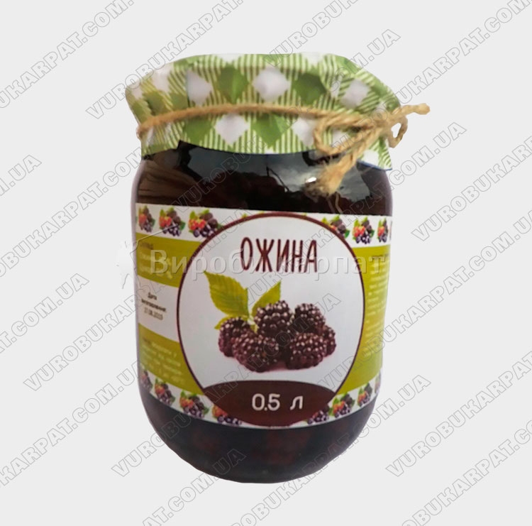 Консервированная ежевика в собственном соку. Состав 80% ежевика, 20% сахара. Ёмкость банки 0,5 литра.