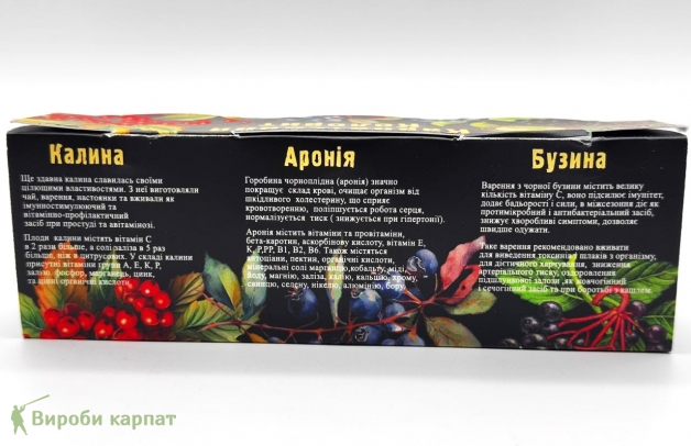 Еще давно калина славилась своими целебными свойствами. Из нее изготовляли чай, варенье, настойки и употребляли как иммуно стимулирующее и витаминно-профилактическое средство при простуде и авитаминозе. Плоды калины содержат витамин С в 2 раза больше, а соли железа в 5 раз больше, чем в цитрусовых. В составе калины присутствуют витамины группы А, Е, К, Р, железо, фосфор, марганец, цинк и ценные органические кислоты.