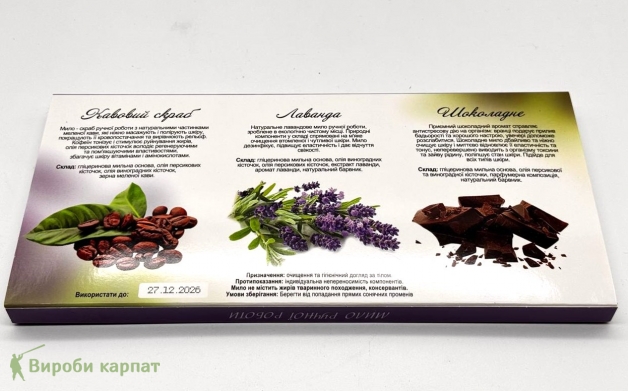 Ручное мыло трио ароматов (шоколадное, лавандовое, кофейный скраб)