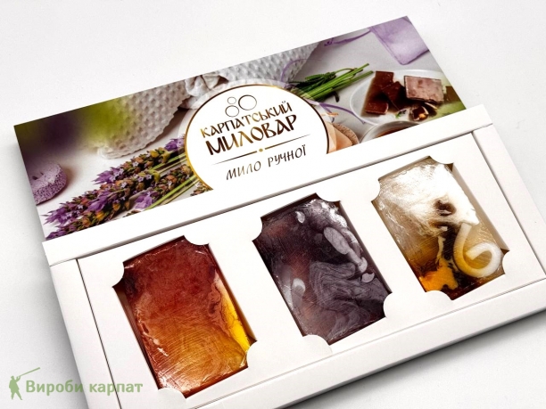 Эксклюзивный набор из трех кусочков мыла ручной работы для полноценного ухода за кожей. Каждый кусочек имеет уникальный аромат: