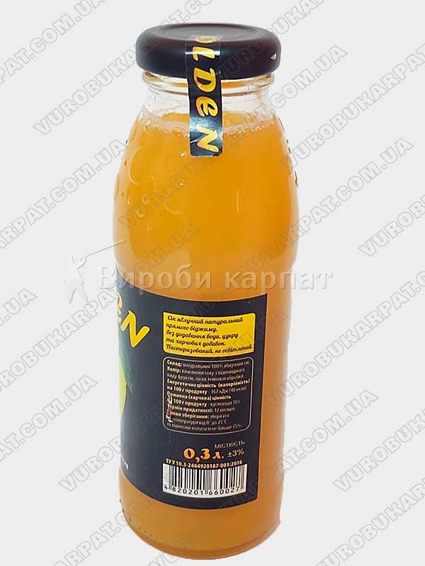 Сок яблочный натуральный прямого отжима без добавки воды, сахара и пищевых добавок, пастеризованный.