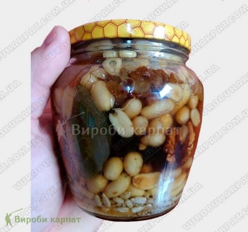 Микс мёда с орешками, черносливом, изюмом.