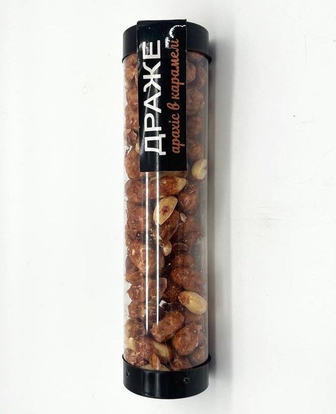 Драже с арахисом в карамеле, обжаренный арахис, покрытый хрустящей карамельной оболочкой. Обладает сладким вкусом и аппетитной текстурой. Вкушает как самостоятельный снек или как дополнение к десертам