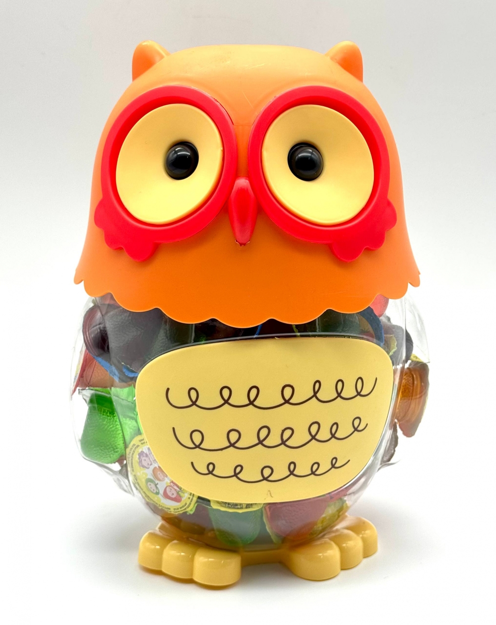 Набор ярких желейных конфет в пластиковой банке в форме совы. Внутри — разноцветные желейки с разными вкусами: клубника, апельсин, яблоко, виноград и др.Цена указана за 1 упаковку.