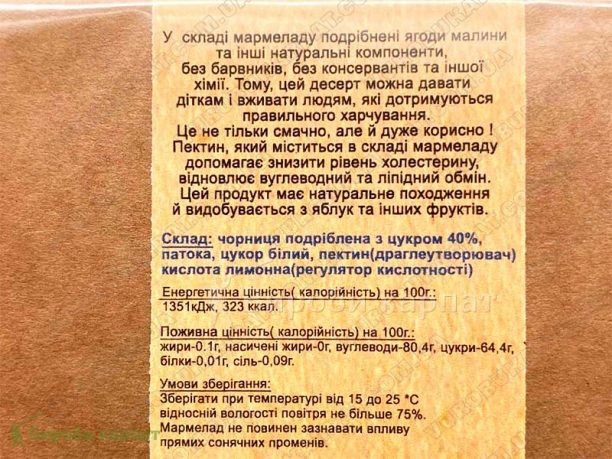 Мармелад из черники в составе мармелада измельченные ягоды и другие натуральные компоненты без красителей, без консерванто.Поэтому этот десерт можно давать детям и употреблять людям, придерживающимся правильного питания.