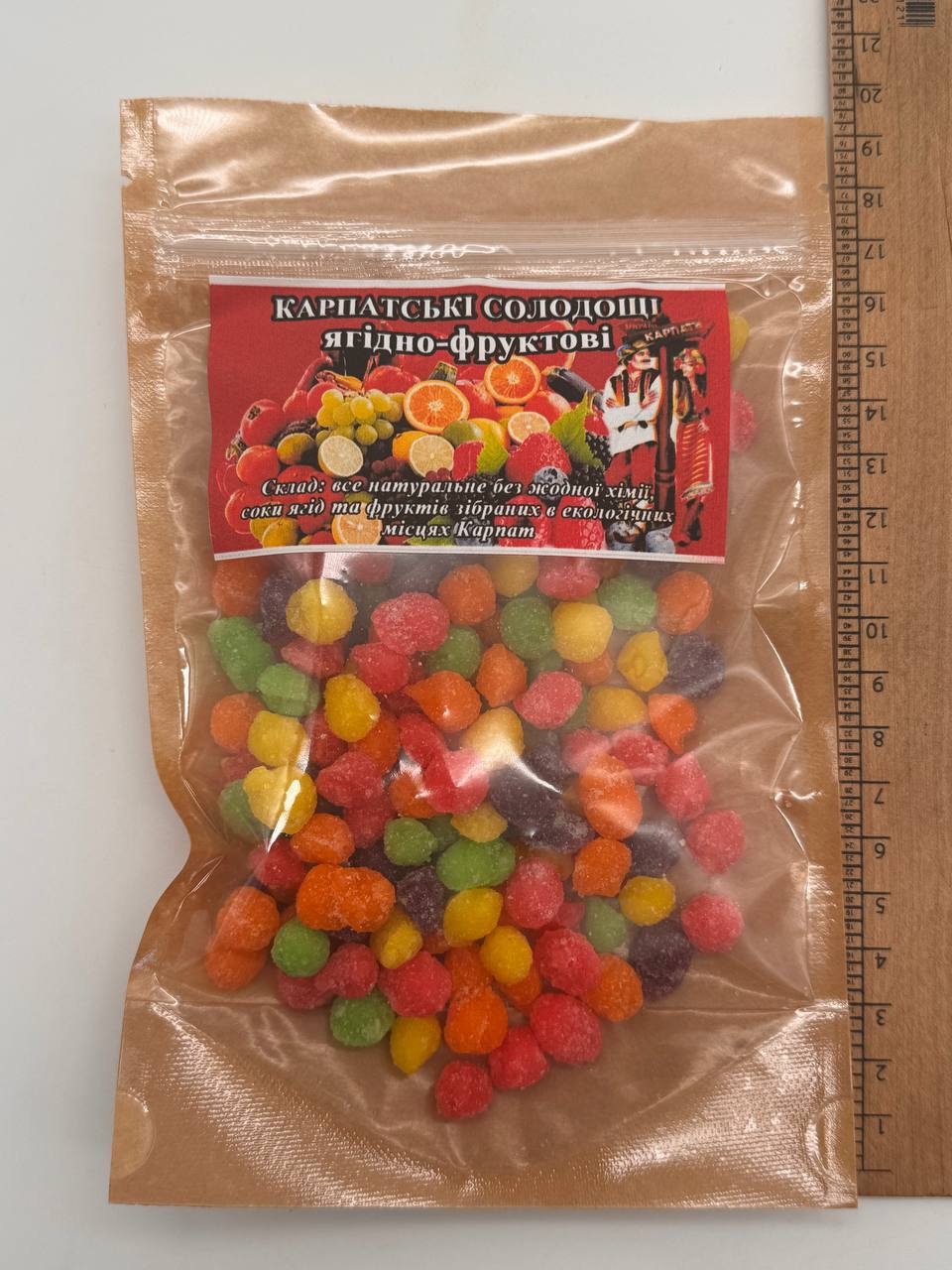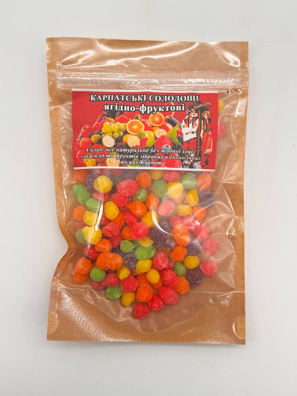 Карпатские ягодно-фруктовые сладости, натуральный продукт, созданный без химии. В составе соки и ягоды, собранные в экологически чистых районах Карпат. Это лакомство сохраняет природную сладость и полезные свойства фруктов и ягод, таких как черника, малина, ежевика, брусника и другие. Сладости являются источником витаминов, антиоксидантов и полезных веществ, дающих вкус природы и здоровью.
