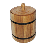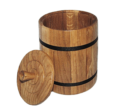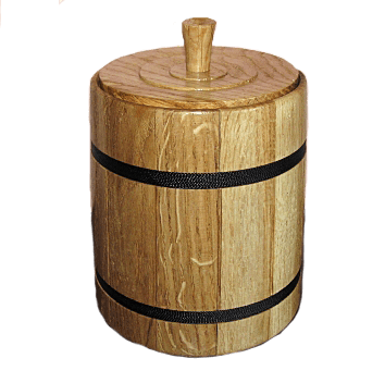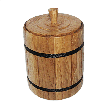 Конусный дубовый бочонок, для сыпучих продуктов. С приблизительной ёмкостью около 0,5 литра.