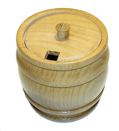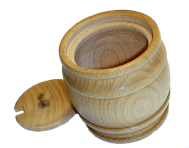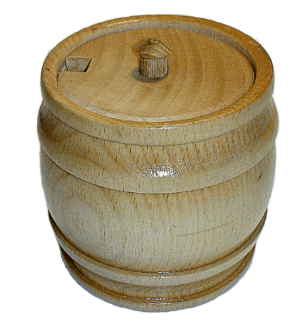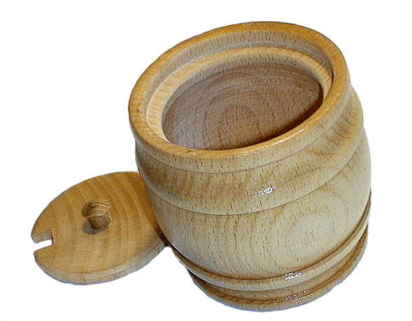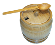 Деревянный бочонок из дерева (дуб) для кухни. Благодаря натуральному материалу, такой бочонок хорошо использовать под соль, сахар, специи, мёд. На крышке есть отверстие, в котором можно оставлять ложку.