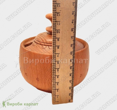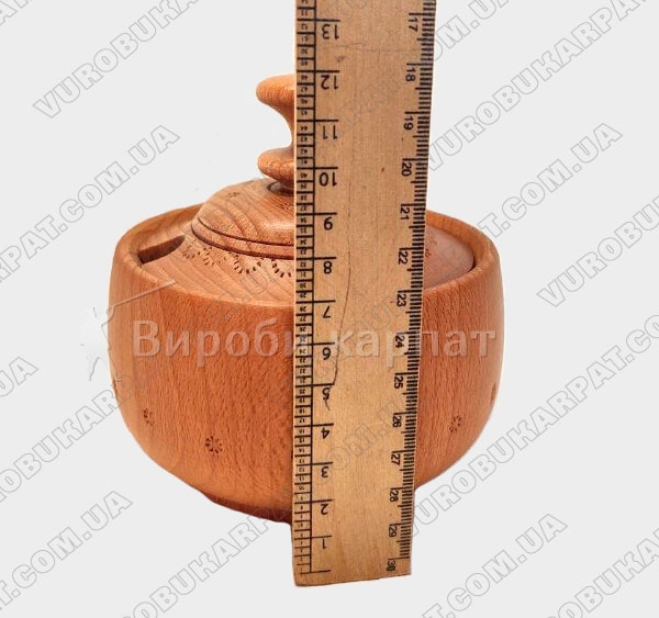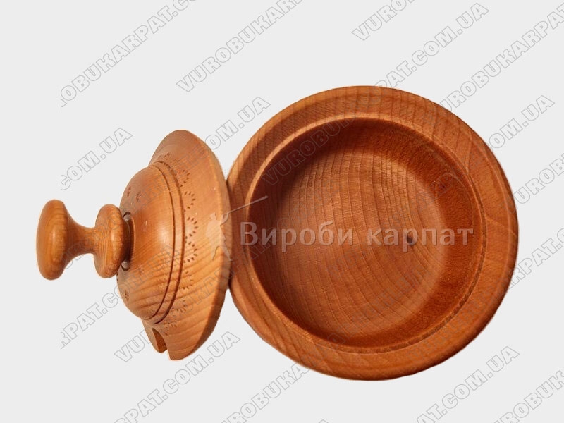 Деревянный бочонок для специй с отверстием для ложки и красивым узором. Емкость из натурального дерева надолго сохранит аромат ваших специй и украсит интерьер кухни.