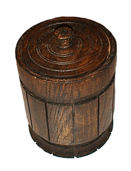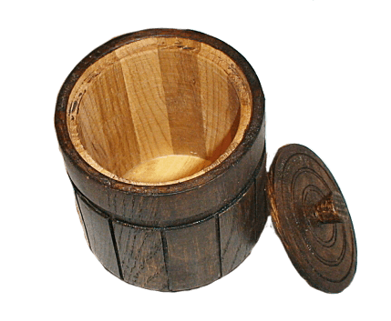 Деревянный бочонок, объёмом 0,5л. Предназначен для хранения сыпучих продуктов.