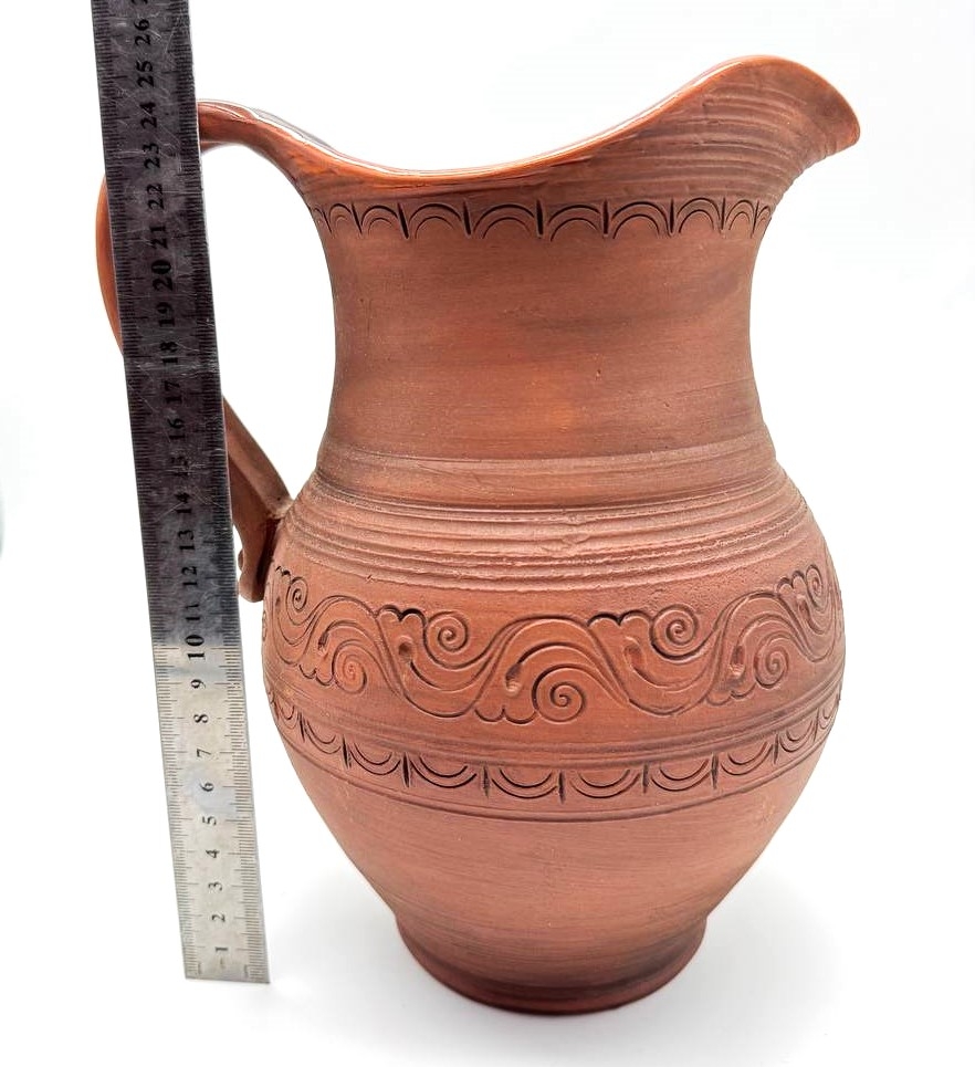 Этнический керамический кувшин для напитков ручной работы, уникальное изделие, созданное в традиционном стиле. Изготовлен из натуральной керамики, украшен орнаментами, отражающими культурное наследие. Идеально подходит для подачи воды, компота или домашних напитков, добавляя подлинности вашему столу.