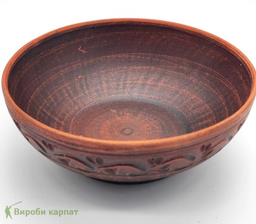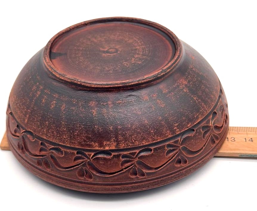 Традиционный керамический салатник, изготовленный из глины, имеет простой, но элегантный дизайн. Украшен традиционным орнаментом, что придает ему подлинность. Такой салатник подходит для подачи разнообразных блюд, придавая столу особый уют и традиционный шарм.