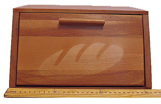 Деревянная хлебница, размером 32х22х17 см. Натуральное дерево создает микроклимат, благодаря которому хлеб долго не черствеет. Хлебница очень вместительная и удобная в использовании, легко чистить.