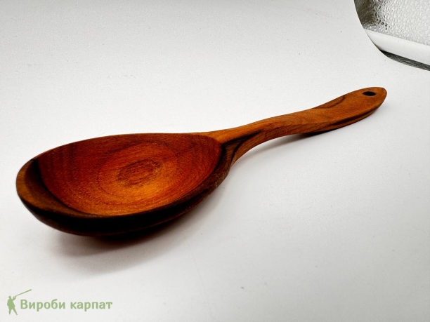 Деревянная ложка из черешни 20см. Изготовлена из натурального дерева черешни, является идеальным инструментом для приготовления и сервировки. Ее природный материал и изящный дизайн делают ее удобной в использовании и приятной на ощупь. Это отличный выбор для тех, кто ценит натуральность и экологичность.