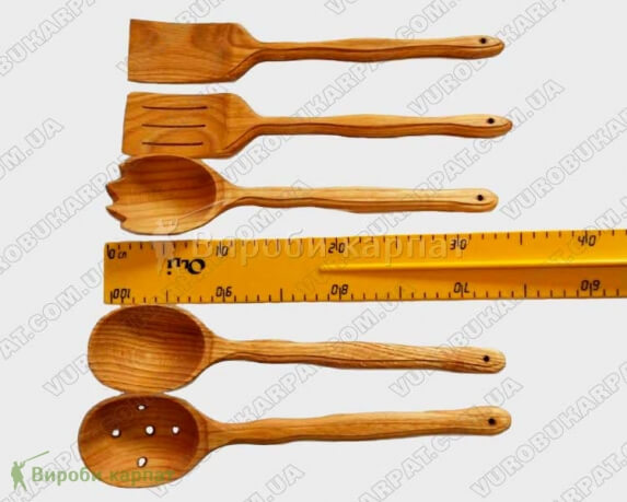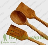 Набор для кухни изготовлен из древесины дуба. Кухонный деревянный набор, который значительно облегчит процесс приготовления пищи. Предметы изготовлены из дерева, которое является идеальным материалом для этой кухонной утвари. И конечно, в повседневном использовании столовые приборы из дерева попросту приятно держать в руках! Они рождают воспоминания о полузабытых народных традициях, простой и понятной жизни в согласии с природой.