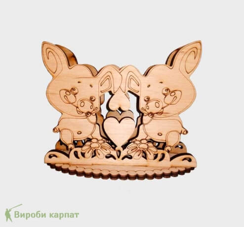 Деревянная салфетница из фанеры, с двумя свинками. Очень символично, к новому 2019 году.