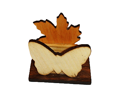 Деревянная салфетница, листок и бабочка.