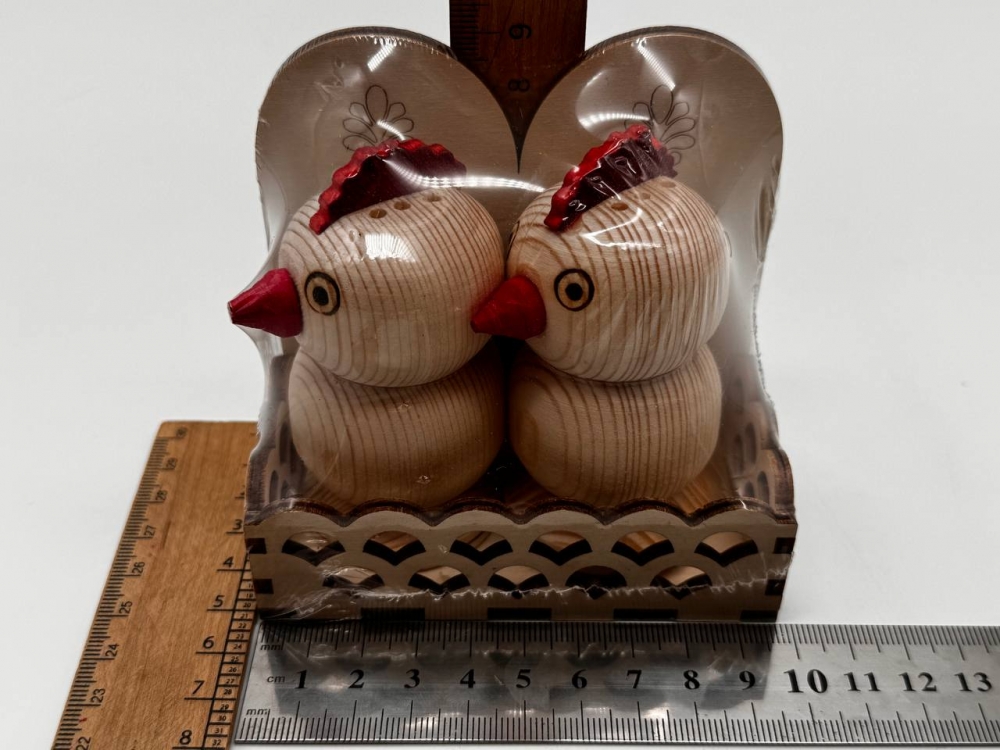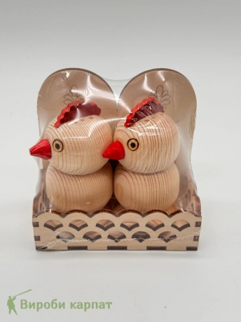 Набор для специй "Петушки" из дерева, экологически чистый продукт, изготовленный из натурального дерева без использования вредных химических веществ. Такой набор удобен для хранения и использования специй, а также привлекательным элементом интерьера на вашей кухне.