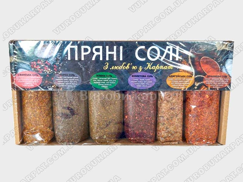 Оригинальный набор пряных солей включает 6 разнообразных натуральных солей на любой вкус.