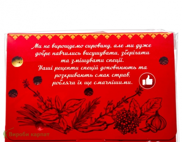 Состав: смесь специй, включая сушеные овощи, чеснок, паприку, черный перец, зелень и другие натуральные компоненты.