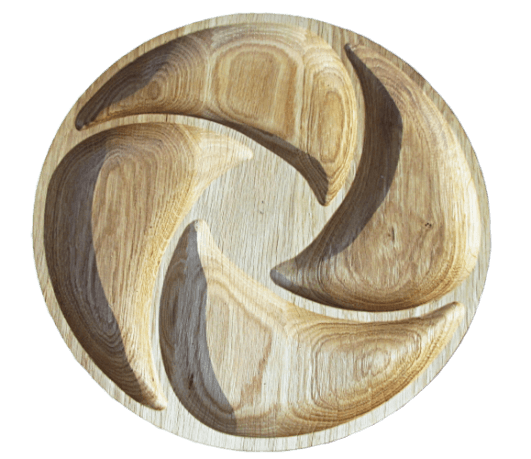 Тарелка для подачи 4-секционная. Такая посуда прекрасно украсит Ваш стол, удивит Ваших гостей, станет прекрасным оригинальным подарком для людей, которых уже удивить практически нечем. Материал изготовления - черешня, дуб,ясень.