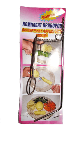 Универсальный набор для нарезки и фаршировки. В комплекте два прибора для художественной нарезки и фаршировки овощей и фруктов.