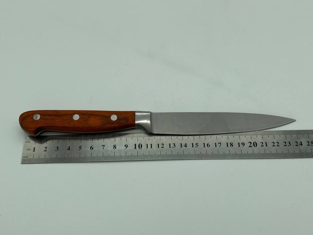 Кухонный нож длиной 25 см, удобный инструмент для резки и обработки различных продуктов в кулинарных процессах. Благодаря острому лезвию и удобной рукоятке, он обеспечивает точность и эффективность при работе с ингредиентами. Этот нож является неотъемлемой частью кухонного инвентаря для поваров, помогая им добиваться высоких результатов в приготовлении.