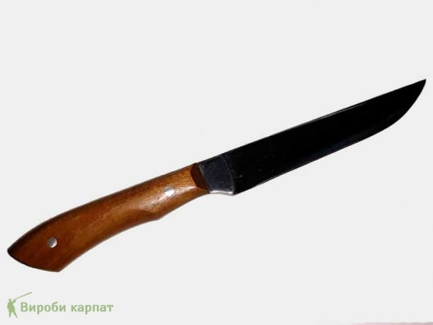 Кухонный нож ручной работы. Для изготовления подобрана нержавеющая сталь, которая обладает высокими свойствами остроты, прочности лезвия ножа, не тупится при довольно длительном использовании. При правильном обращении с ножом, с лёгкостью может служить более 10 лет.
