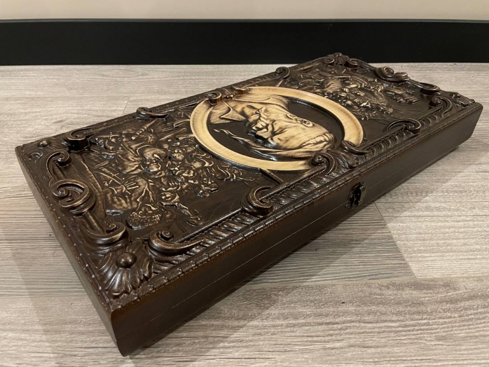 Wooden backgammon with a carving on the Cossack cover is an elegant board game. Backgammon with a Cossack cover is not only an intellectual game, but also an art that wins the hearts of fans of board games with its beauty and depth of play. A completely ecological product made in the Carpathians
