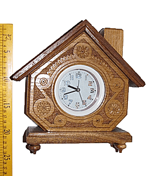 Wooden clock with elements of woodcarving.