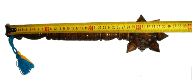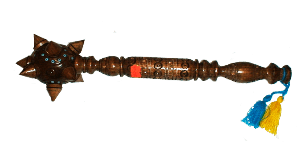 Little Bulava with elements of hand-carved and inlaid with beads. Souvenir wooden mace - made entirely by hand by Ukrainian masters of western Ukraine. Bulava - gift and souvenir of the past centuries, which symbolizes success, power and authority. The length of the mace is up to 35 cm.