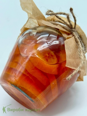 Mandarin Jam• Fragrant jam with real mandarin slices• Natural citrus taste, rich in vitamin C• Perfect with tea, toast, or dessertIngredients: mandarin, sugarOrigin: Ukraine, handmade