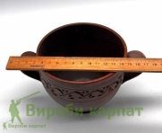 Traditional ceramic bouillon bowl made of natural clay, has a classic shape with handles for convenience. Its characteristic texture and decorative ornaments on the surface reflect folk traditions. Such a bouillon bowl is ideal for serving hot dishes, retaining heat thanks to the material, and also gives the table an authentic, cozy look