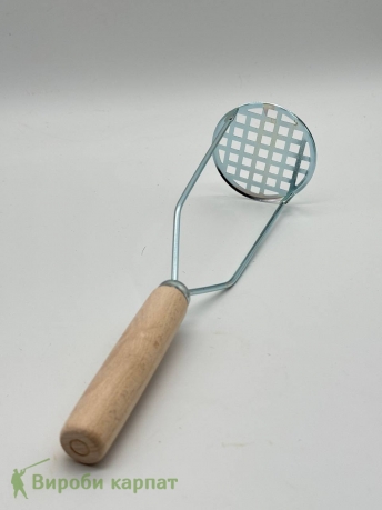 A metal masher for potatoes and other products, indispensable for cooking, where the texture and aroma of the product are important. It will be a great helper for people who like to cook