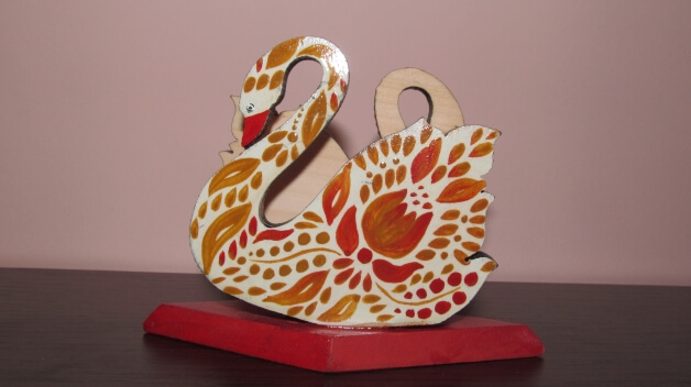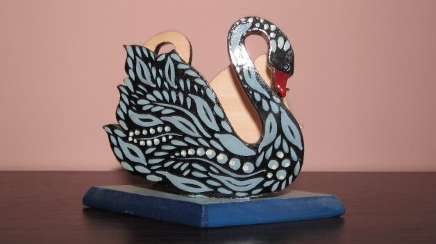 Tissue in the shape of a swan. With the author's art painting. Individual works. In limited number.