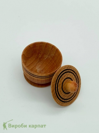 Wooden mini salt shaker with a lid. Such a salt shaker will become a wonderful decoration of your kitchen, and will keep salt or other loose products dry. Made from ecological materials of the Carpathians