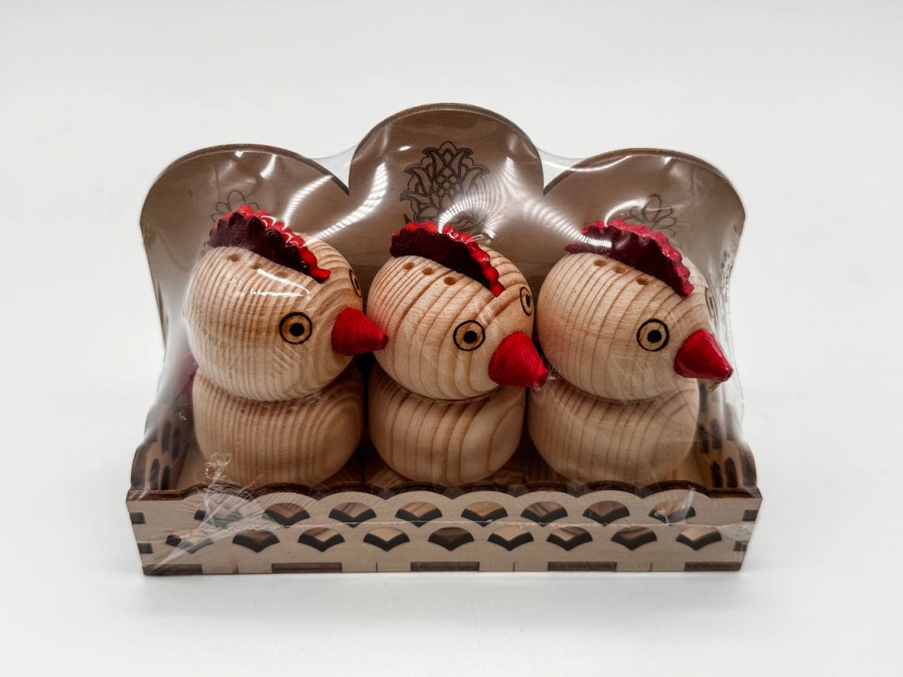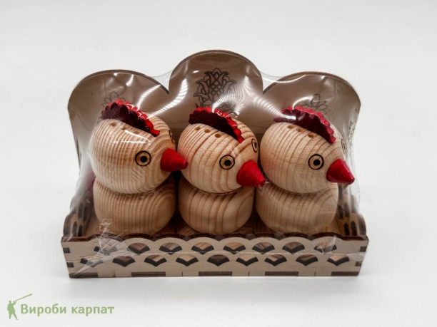 Set for spices "Roosters" made of wood. They are made of high-quality natural wood, do not contain harmful substances and are characterized by a unique design. Provides convenient storage and use of spices, adding a sense of aesthetics and environmental awareness to your kitchen.
