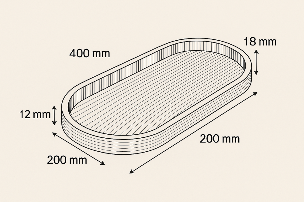 • Versatile oval board (40 × 20 cm, 3 cm thick) for appetizers, cutlery, veggies or as a stylish plant stand.