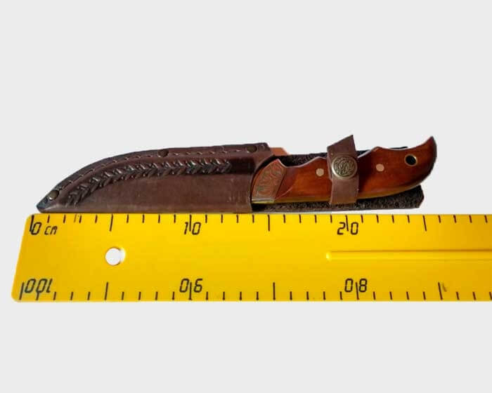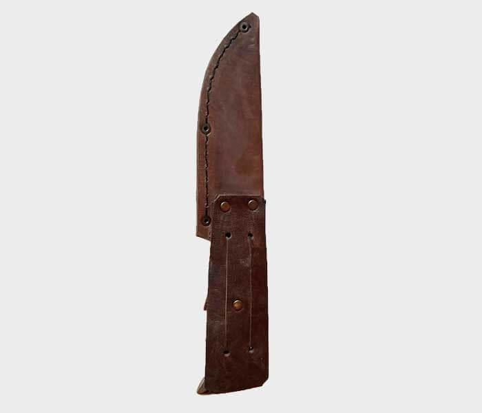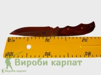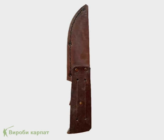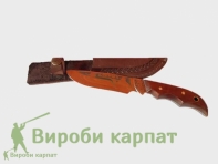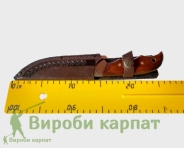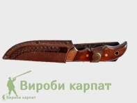 Handmade hunting knife using high quality materials. Steel has a hardness of 58-62% on the Rockwell scale. The edge of the cutting part has 15 degrees, due to which the knife perfectly keeps sharpening, easy to edit. The wooden handle decorated with a metal decor is qualitatively fitted under a knife blade. Complete with a leather case, which is conveniently mounted on a belt.