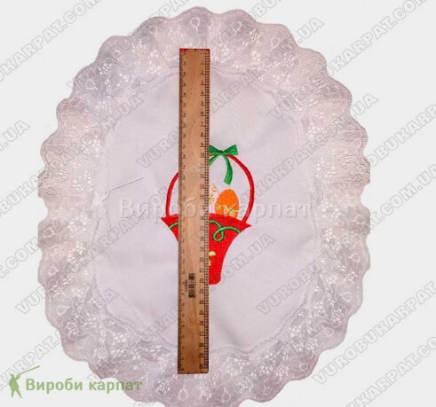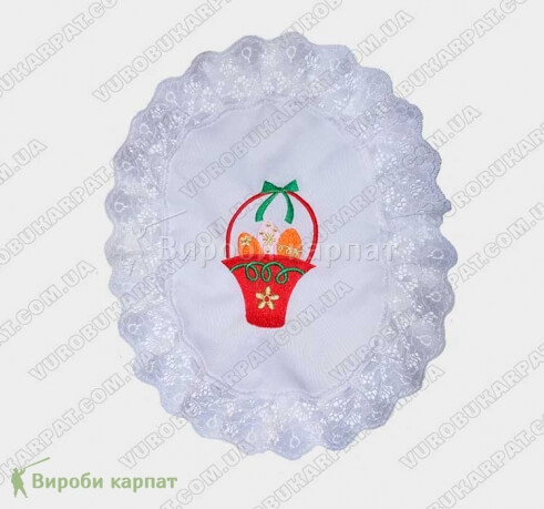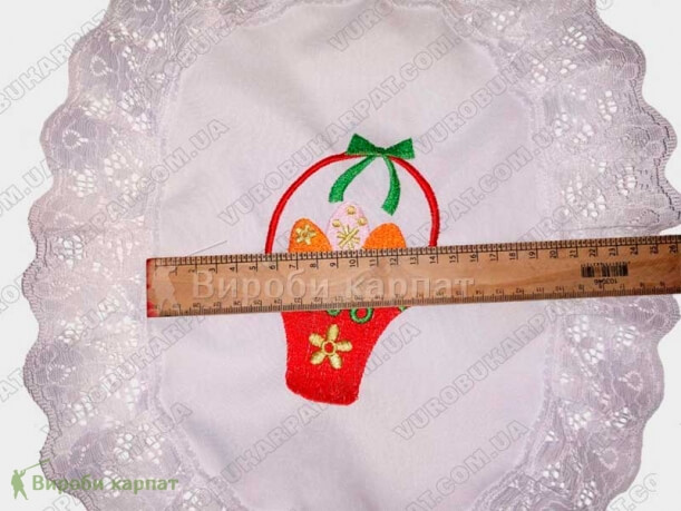 Cape oval basket with embroidered Easter themed images. With a total size of 30x40 cm.