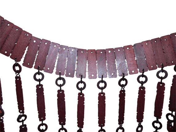 Decorative curtains are made of wooden planks and rings. Size: 180х100 cm.