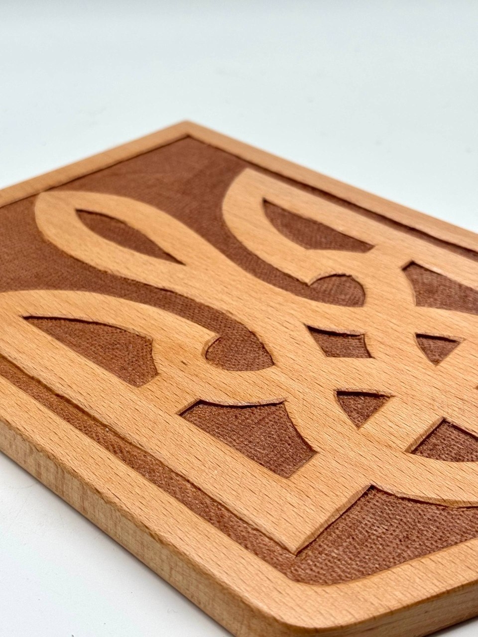 Patriotic wall plaque made of natural beech wood with a 3D carved trident — a symbol of strength, faith, and independence of Ukraine. Perfect for home, office, or as a meaningful gift. Available in light and dark tones.