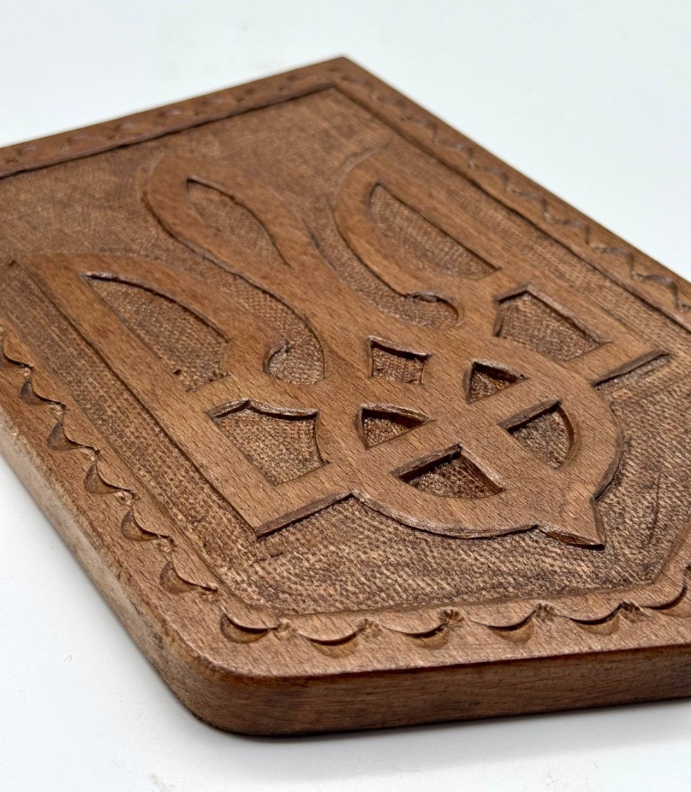 Handcrafted wooden wall plaque featuring a carved trident — a national symbol of strength, dignity, and freedom of Ukraine. Ideal for home, office, or patriotic decor. Available in light and dark wood tones.