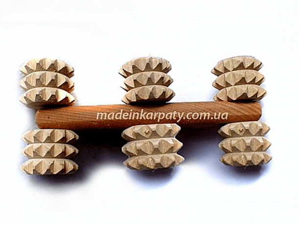 Wooden Massager with rollers. As a result of the massage improves blood circulation, which promotes movement and decrease the fat cells. This lovely massager, will not only improve your health, but also will be useful gift. Made of wood.