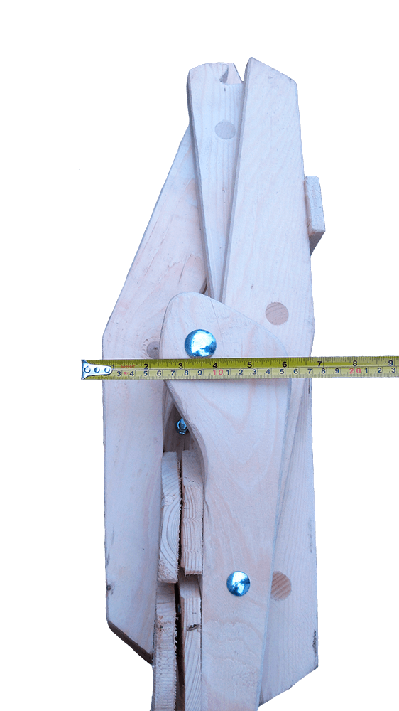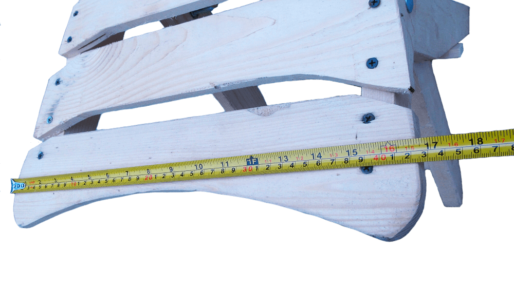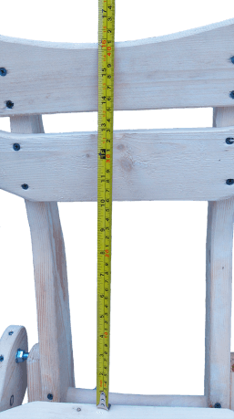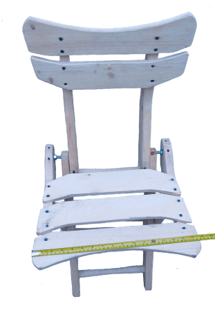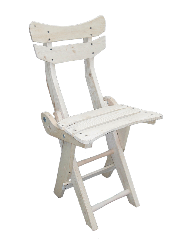 Wooden folding highchair. Perfectly suitable for picnics, fishing, cottages, in a house where there is little space, thanks to its compactness and versatility. It has no paintwork, the surface of the chair is not ideal, requires additional grinding. Fibers of a tree can raise pile with time, it is desirable to open a chair with a paint and varnish coating. What will make the product more enjoyable to use.