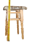 Kitchen tabouret with turned legs. Made of beech wood. The upper part of the fiberboard, covered with cloth.