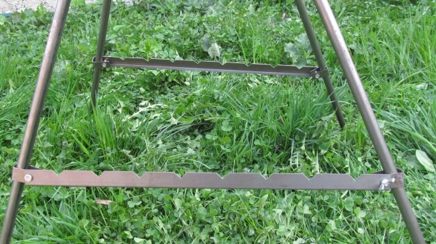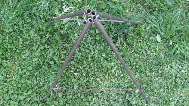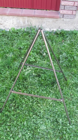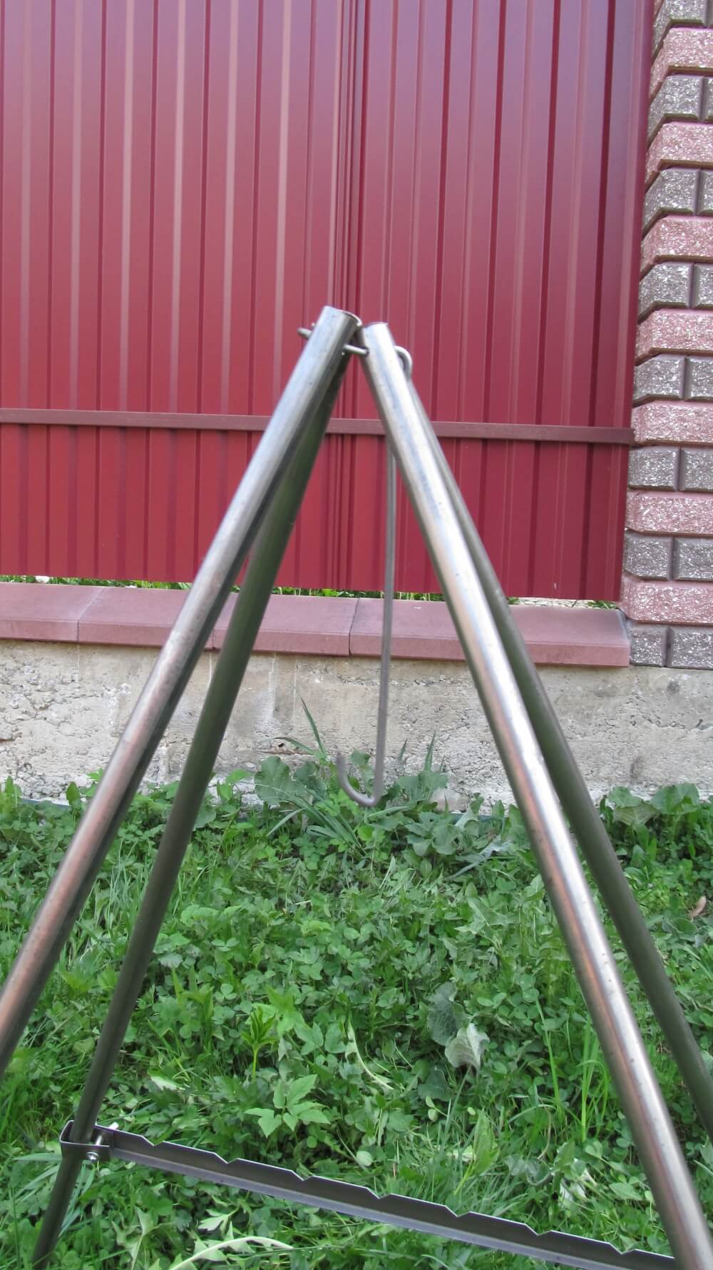 Металлическая четыренога, для котелка, в нижней части есть дополнительное крепление для мангала. Компактное, легко устанавливается и разбирается.