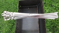 Металлический прямой шампур из нержавейки, длиной 550 мм, толщина металла 2 мм, ширина 11 мм. С дополнительной Премиум обработкой.