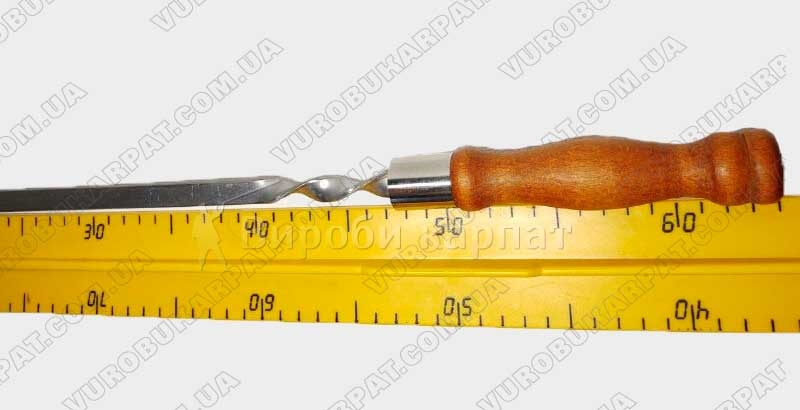 Длина шампура 630 мм, ширина 12 мм, толщина металла 3 мм.